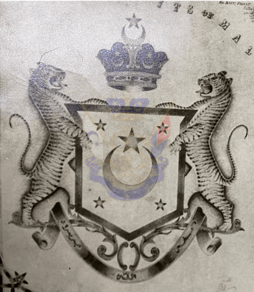 Pada tahun 1886, Sultan Abu Bakar menzahirkan idea untuk diadakan lambang atau jata negeri. Beberapa orang tukang kayu Melayu membuatnya daripada kayu jati Johor. Lambang ini mengandungi perisai putih yang diukir lambang bulan sabit dan bintang pecahan lima warna kuning di tengahnya yang menandakan Islam dan empat bintang kecil di penjuru perisai yang menandakan empat wilayah utama yang dibuka iaitu Johor Bahru, Muar, Batu Pahat dan Segamat. Perisai ini dikawal oleh dua ekor harimau muda yang melambangkan keberanian, disiplin dan kerajinan. Dua ekor harimau ini menjunjung dan mendukung sebuah mahkota yang menunjukkan kedaulatan Raja yang menaungi rakyat. Di bahagian bawah jata ialah ukiran gambir dan lada hitam, iaitu dua komoditi yang memajukan ekonomi negeri Johor. Di bawahnya pula terdapat sebuah skrol berwarna biru yang tertera moto kerajaan bertulisan jawi “Kepada Allah Berserah”. Warna putih menandakan kesucian, kuning warna DiRaja dan biru warna Raja memerintah.